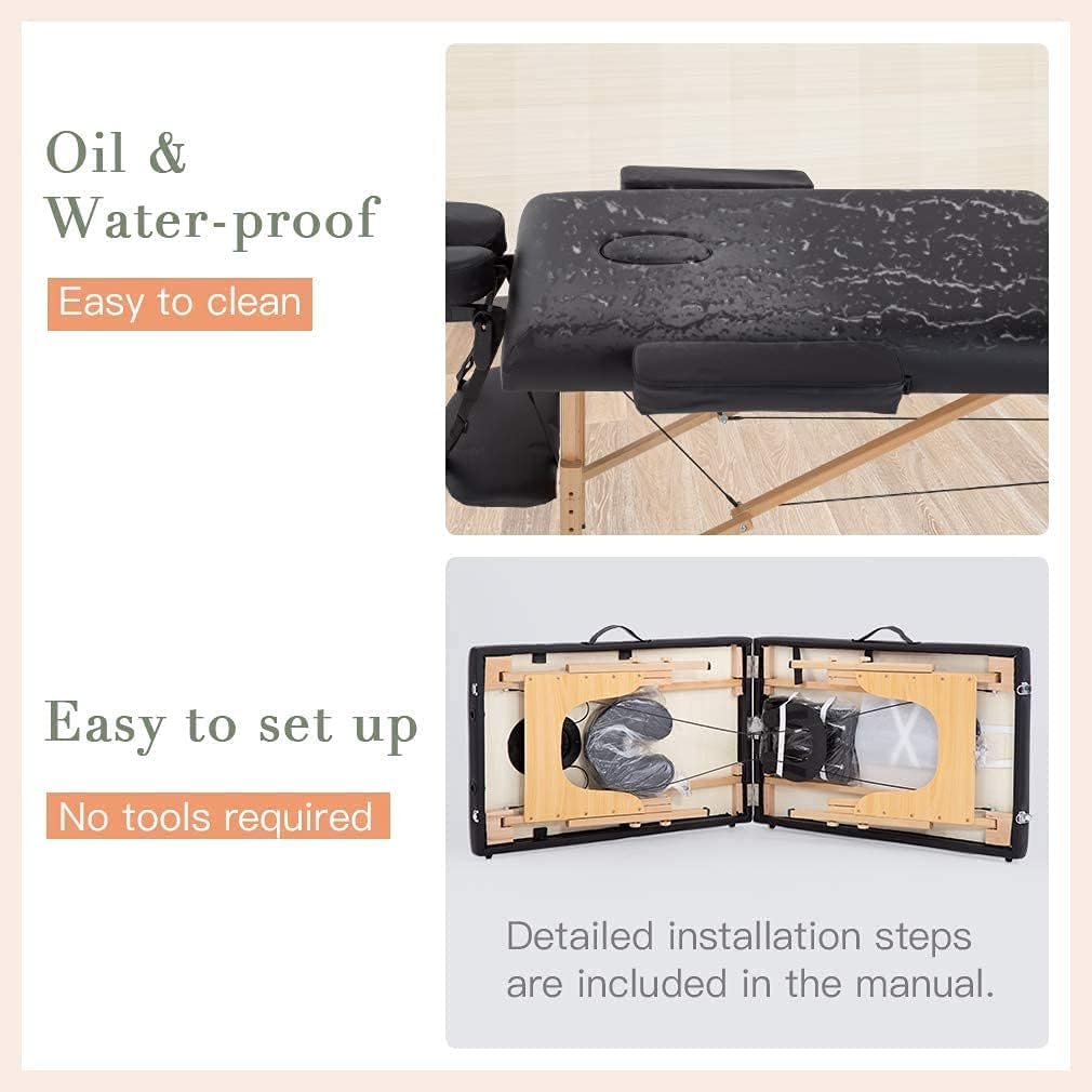 Massage Bed Portable 2 Fold Wooden Massage Table 24 Inch Wide Lash Bed Height Adjustable 2 Folding Spa Table with Non-Woven Bag for Spa Footmassage Facial CareSpa Tattoo