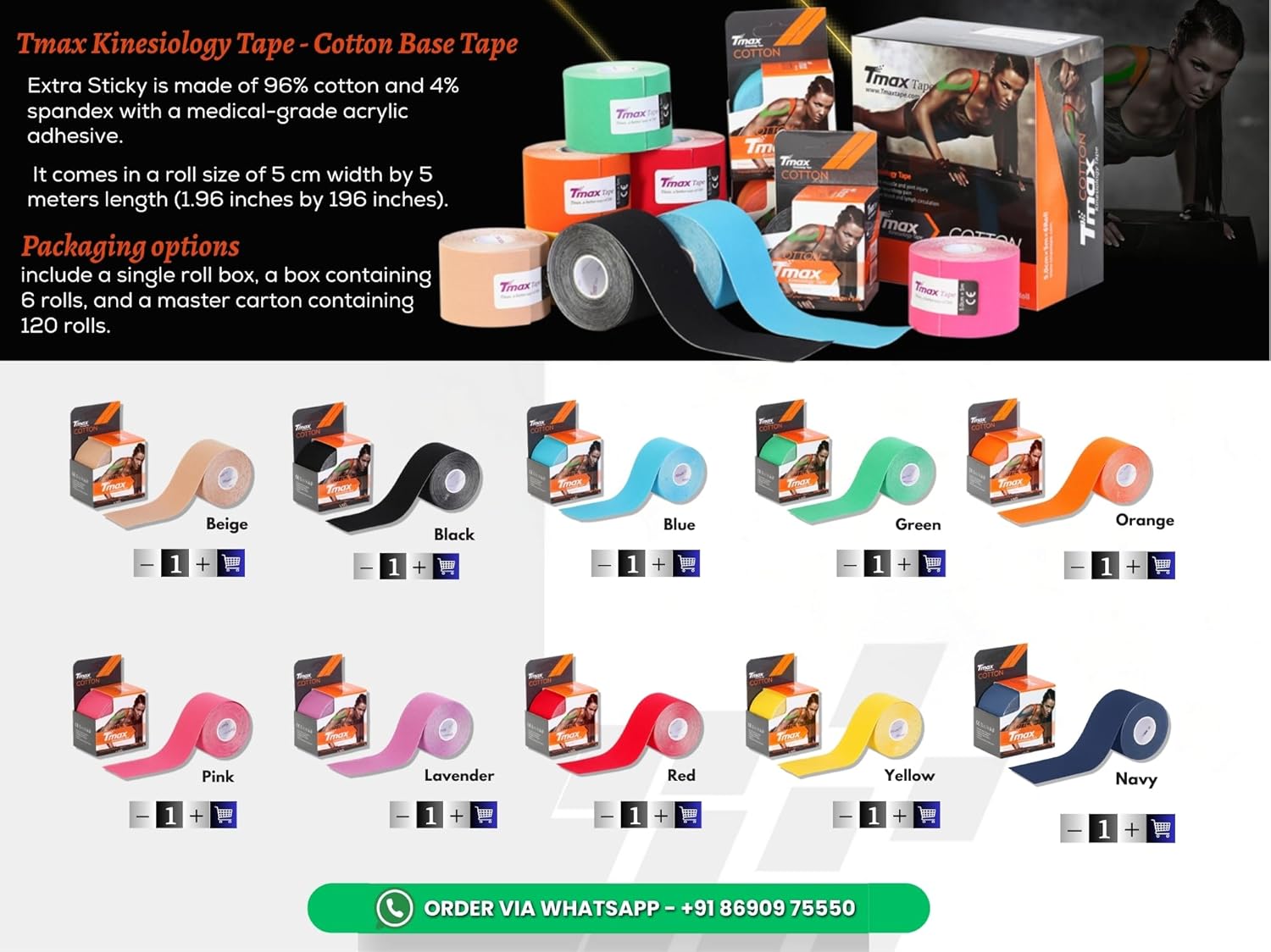 TMAX Kinesiology Tape for Physiotherapy, Sports Injury, Pain Relief Muscle Tape, for Shoulder, Wings, Arms, Ankle K Taping Waterproof Athletic Tape for Pain Support -2 Inch