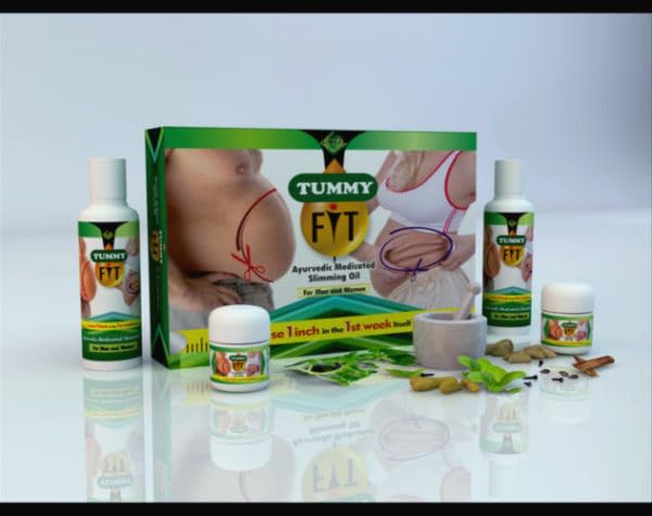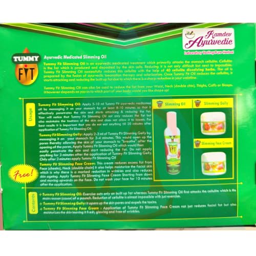 Tummy Slimming Cream and Oil 4pcs Combo Pack Tummy Fit Ayurvedic Silmming Oil Waist & Tummy Trim Fights Cellulite and Reduces Flab For a Flatter and Firmer Waist Helps Tone Muscles